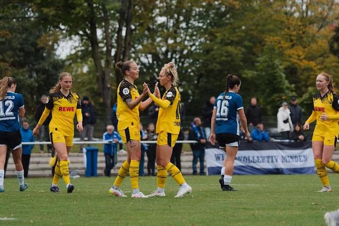 这种近乎苛刻的自我审视,恰恰解释了为什么BVB女足能在本赛季打出23-1的恐怖得失球比。而本周日,她们将迎来真正的试金石:积分榜第三的Arminia Bielefeld(比勒费尔德女足)仅落后4分,这场榜首大战可能直接决定升级悬念的走向。